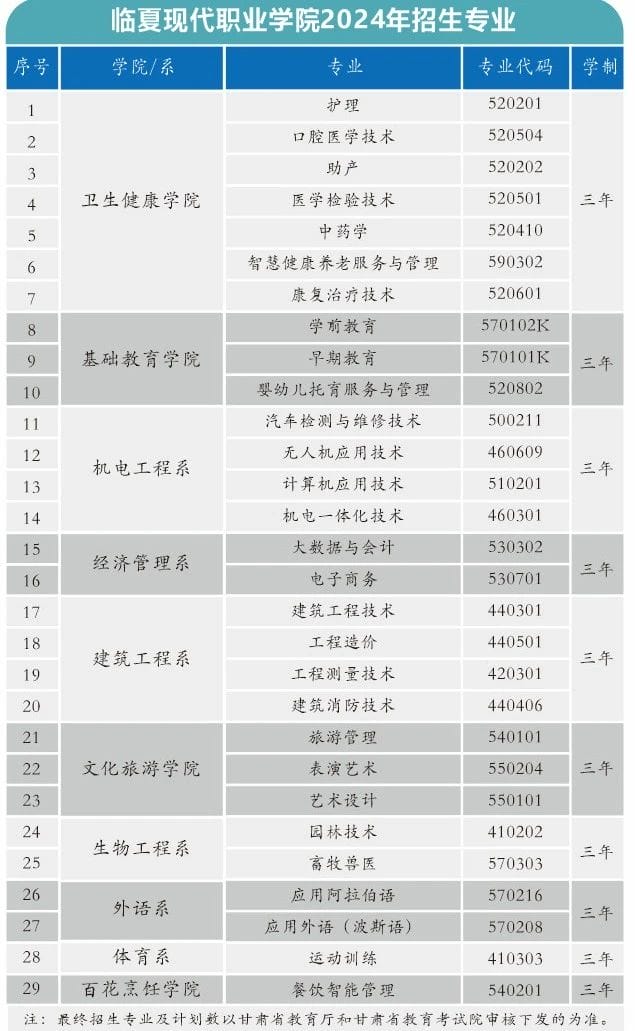 2024年1月,临夏回族自治州人民政府报告中提出:“全面启动临夏现代职业学院升本工作”,学院紧抓国家大力发展职业教育的良好机遇,以创新发展为动力,以“技能甘肃”建设为契机,提质量、增内涵,积极推进“双高”院校建设,努力打造全国民族地区职业教育高地。